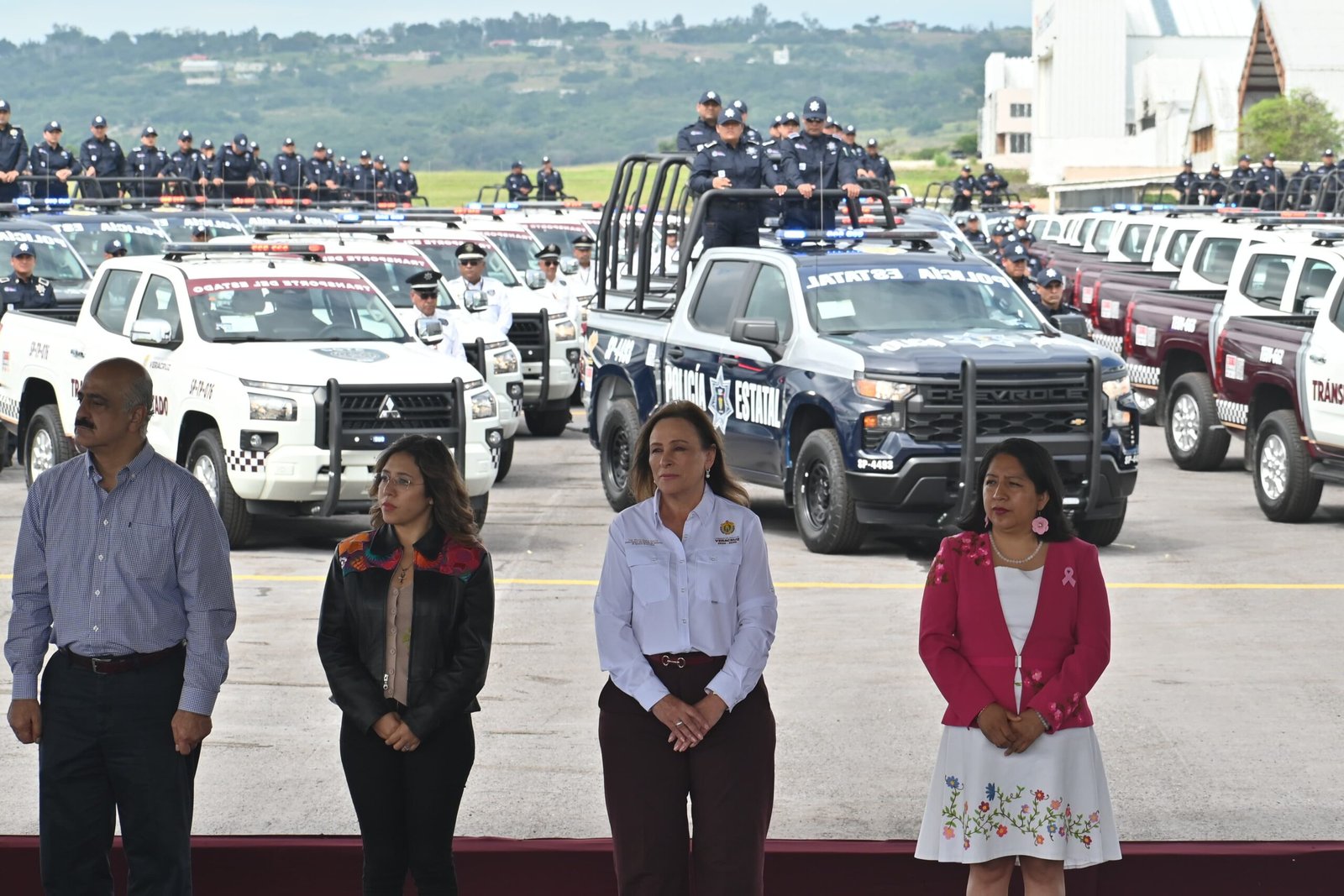 La gobernadora entregó 83 unidades automotores y uniformes a personal operativo de la Secretaría de Seguridad Pública y se espera que en los próximos días se incorporen cientos de motocicletas para labores operativas.