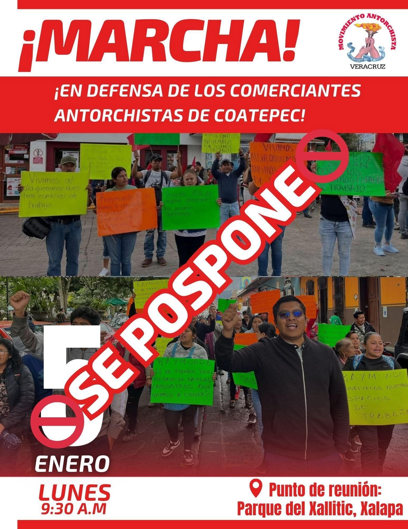 En virtud de la disposición al dialogo de ambas partes, la dirigencia estatal del Movimiento Antorchista en Veracruz acordó suspender la marcha estatal convocada para el lunes 5 de enero por la mañana, como muestra de que la organización no busca ningún tipo de confrontación obcecada con el gobierno estatal ni con la administración municipal entrante.