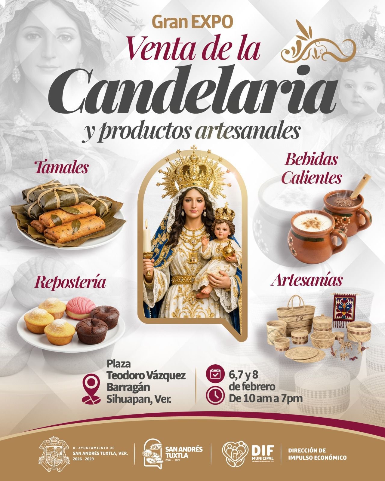 Del 6 al 8 de febrero se celebrará en San Andrés Tuxtla la Gran Expo- Venta de la Candelaria y productos artesanales en la Plaza Teodoro Vázquez Barragán de la comunidad de Sihuapan.