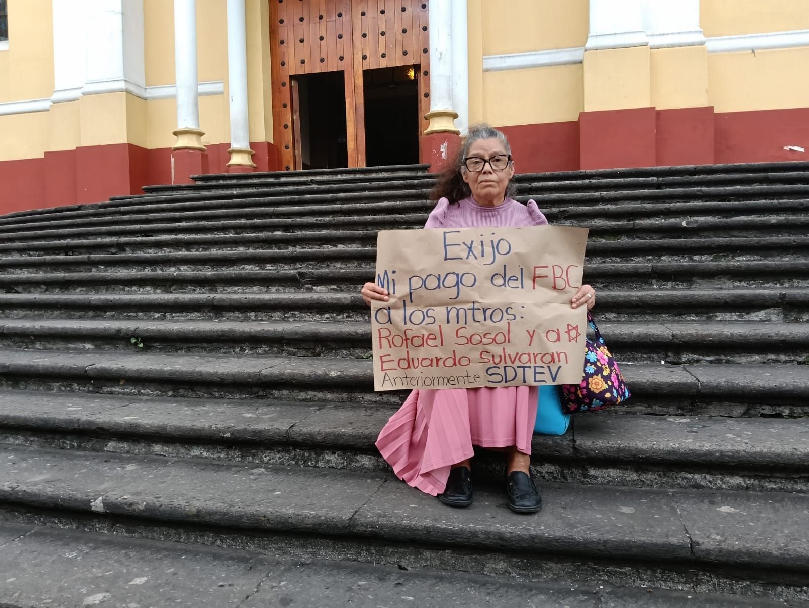 Margarita Francisca Guevara Marín, profesora de educación primaria estatal jubilada desde hace 10 años, se manifestó este miércoles en la plaza Lerdo de Xalapa y anteriormente acudió por tercera ocasión al Palacio de Gobierno para exigir el pago del Fondo de Beneficio Complementario (FBC), recurso que se le descontó quincenalmente durante 28 años de servicio.