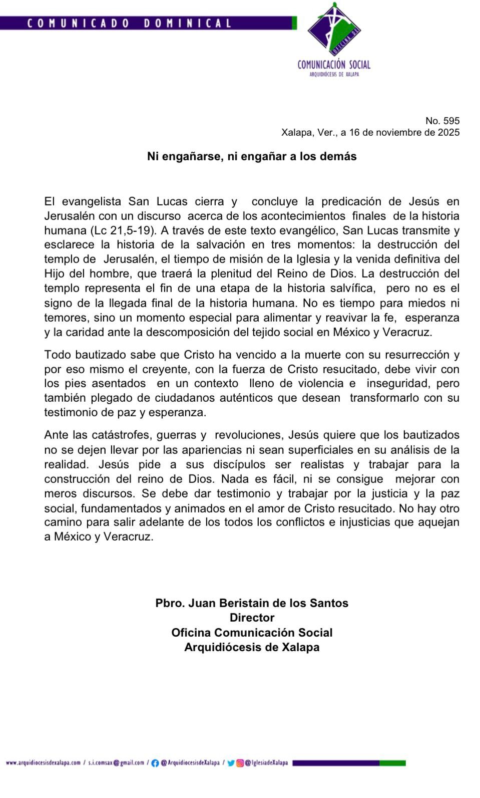 No es tiempo para miedos ni temores, sino un momento especial para alimentar y reavivar la fe, esperanza y la caridad ante la descomposición del tejido social en México y Veracruz.