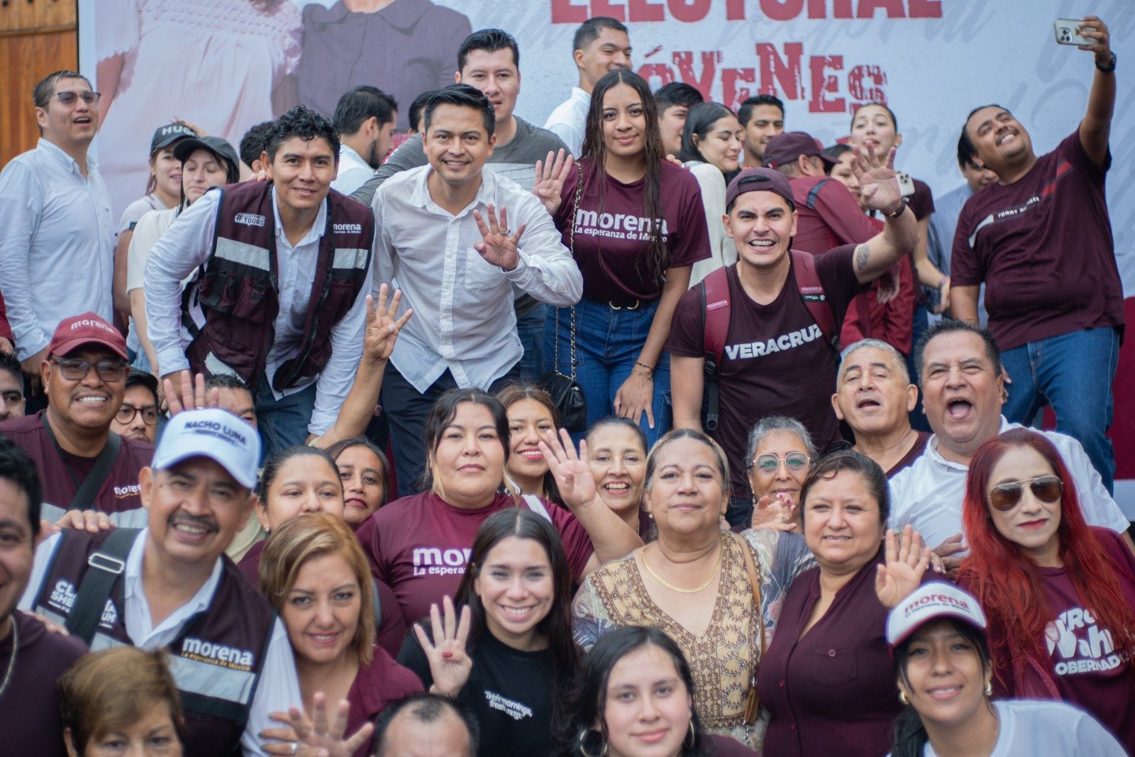 Desde Coatepec, el presidente electo Nacho Luna encabezó la delegación de su municipio junto a su equipo, reafirmando el compromiso de defender los avances democráticos. “¡Ni el agua ni el viento detiene al movimiento!”, declaró con energía.