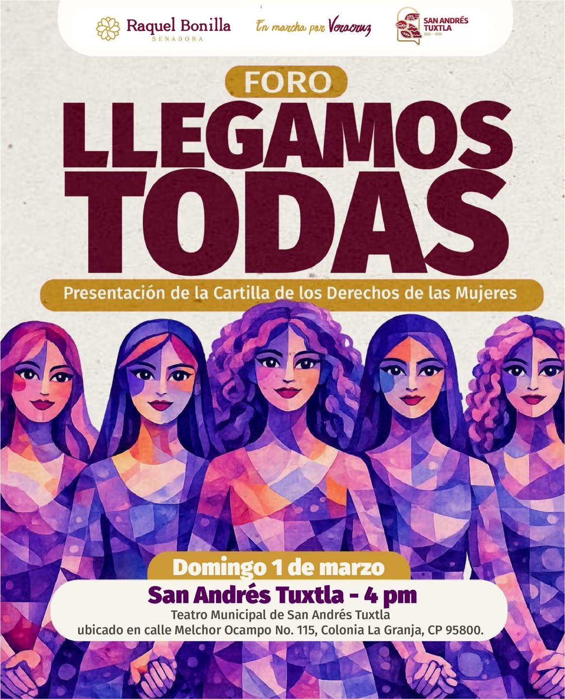 El Ayuntamiento de San Andrés Tuxtla invita a la Presentación de la Cartilla de los Derechos de las Mujeres, un espacio de diálogo, reflexión y fortalecimiento de los derechos de todas.