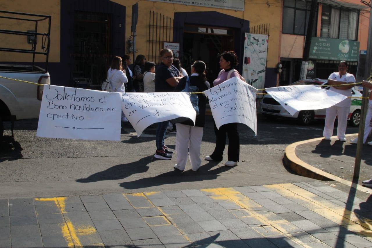 Trabajadores del sector Salud se manifestaron este viernes a las afueras de distintos hospitales para exigir que el bono navideño que reciben cada año sea entregado en efectivo y no mediante vales de despensa, como fue determinado para este 2025.