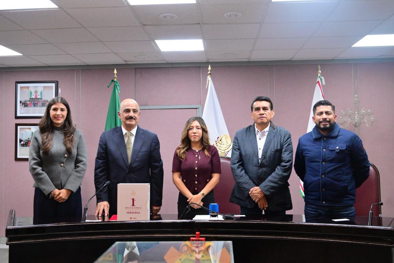 En representación de la LXVII Legislatura, la Mesa Directiva, presidida por la diputada Naomi Edith Gómez Santos, y el presidente de la Junta de Coordinación Política (Jucopo), diputado Esteban Bautista Hernández, recibieron del titular de la Secretaría de Gobierno (Segob) del estado, Ricardo Ahued Bardahuil, el Primer Informe de Gobierno de la administración encabezada por la ingeniera Rocío Nahle García.