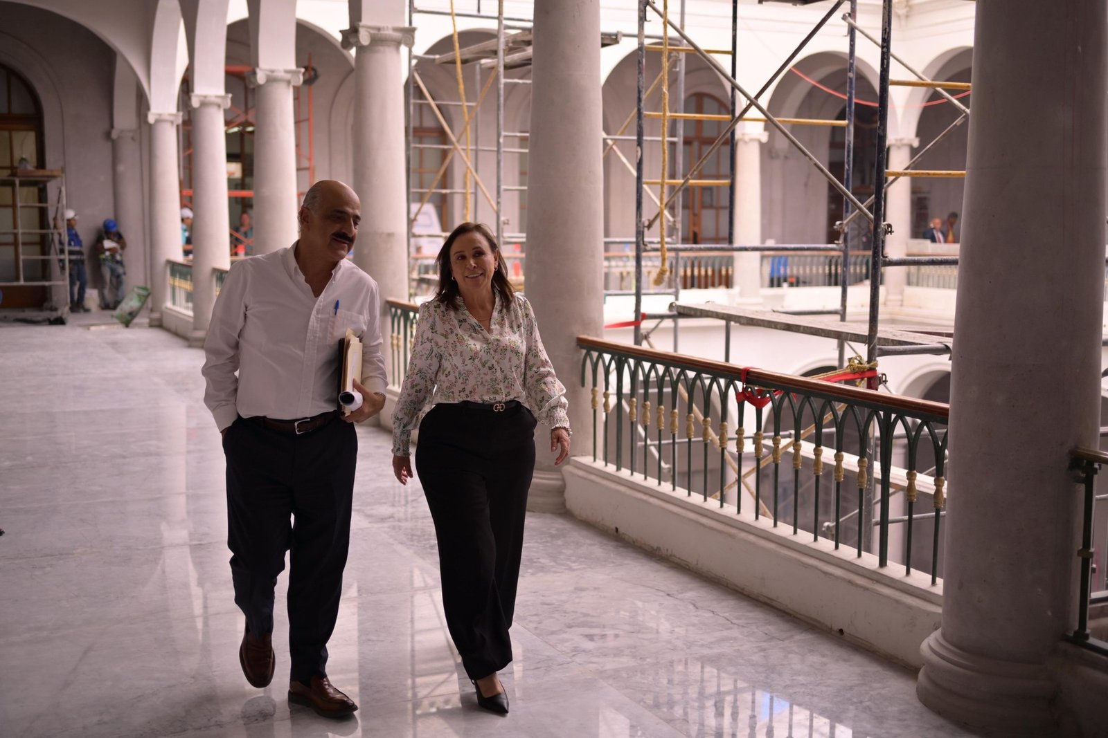 Xalapa, Ver.- La gobernadora Rocío Nahle García supervisó, junto con el secretario de Gobierno (Segob), Ricardo Ahued Bardahuil, la rehabilitación del Palacio de Gobierno, destacando que se trata de la primera intervención integral en más de 50 años.