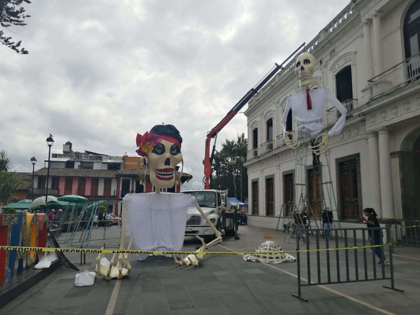 Este jueves, en el parque Miguel Hidalgo del municipio de Coatepec comenzó la instalación de las Catrinas Monumentales.